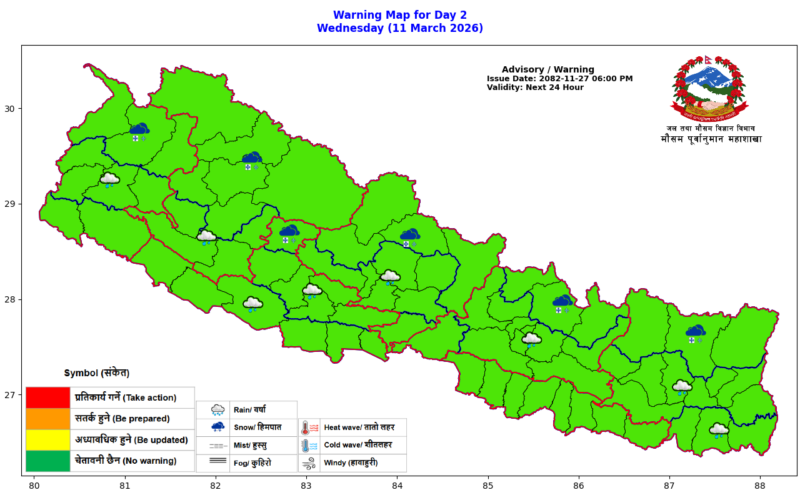 बुधबार यी स्थानमा पानी र हिउँ पर्ने संभावना