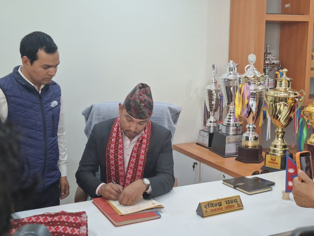 प्रादेशिक रंगशाला भित्र रहेको सदस्य सचिवको कार्यालयमा पदभार ग्रहणपछि सदस्य सचिव चन्दले २ वटा निर्णयमा हस्ताक्षर गरेका छन् ।